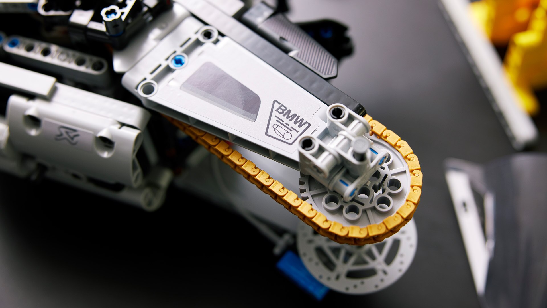 The scale of 1:5 was a real challenge for designers. However, it also enabled them to reproduce the lines, angle dimensions and M RR-specific components more precisely than ever before: Every element needs to have an original equivalent – right down to the carbon-fibre and milled parts of the exclusive M Competition package. The front and rear suspensions alone carry a weight of 1.4 kg. A genuine feat of engineering for which new LEGO® Technic elements were specifically designed. The rims, brake discs and windscreen are also fully custom-made products that were extensively tested before series production. Just like the real M RR.